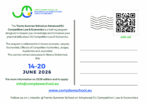 The Trento Summer School on Advanced EU Competition Law & Economics is a training program designed to deepen your knowledge and to improve your practical skills about EU Competition Law & Economics.